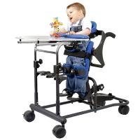 Buy EasyStand Magician-EI Pediatric Standing Frame This brand new EasyStand Magician-EI Pediatric Standing Frame EasyStand Magician-EI Pediatric Standing Frame makes it easy for caregivers to safely transfer a child from his wheelchair to the stander at home or when doing activities with family. EasyStand Magician-EI Pediatric Standing Frame is an early intervention standing system for preschool kids. Quick and easy adjustments can be made to adjust according to any position the child is comfortable in. It features Comfy wrap-around upholstery and normal hip and knee alignment that maintains position from sitting to standing. Main Features: Royal Blue or ruby Red wrap around seat, Kneepads and back, Footplates, 4" locking casters, Clear acrylic table with front pad, Gas spring lift, Table/Front Pad. » More Information about EasyStand Magician-EI Pediatric Standing Frame.